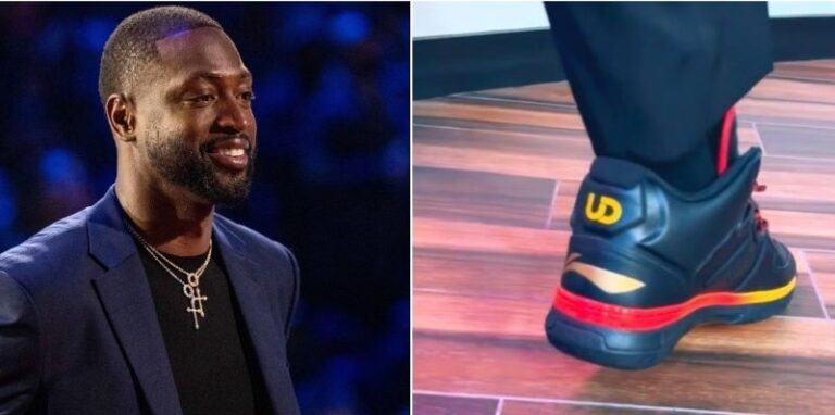 照片中:德维恩·韦德 (Dwyane Wade) 为名人堂搭配定制“Udonis Haslem”鞋和价值 483 美元的范思哲 (Versace) 眼镜
